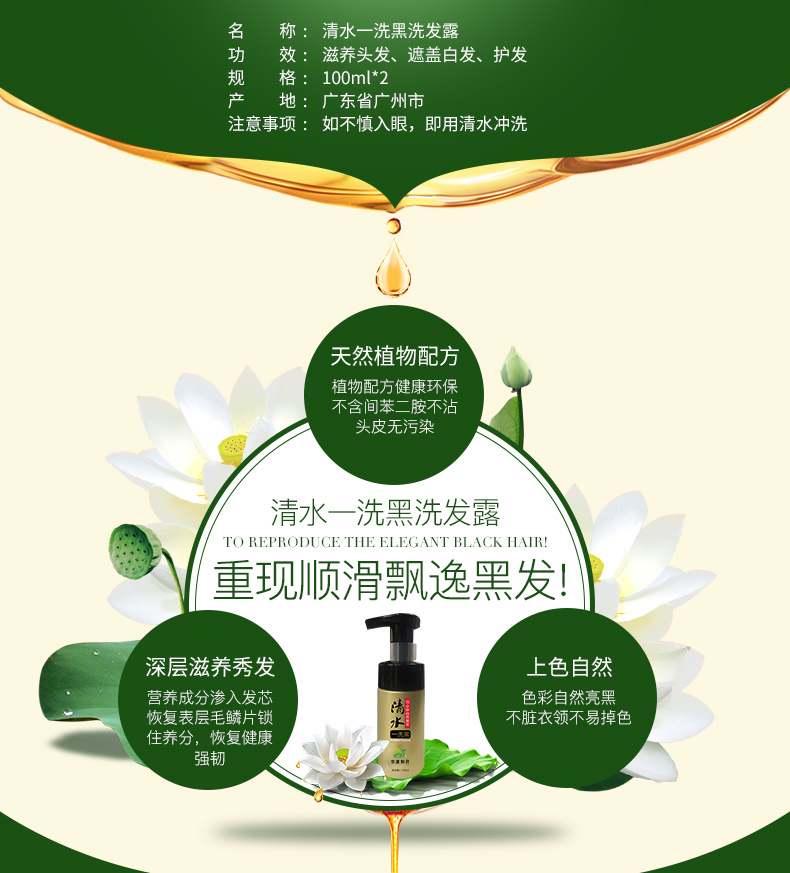 現(xiàn)代科技:清水一洗黑采用國(guó)際先進(jìn)微波萃取技術(shù)結(jié)合植物漢方秘方,通過(guò)敏感皮膚測(cè)試,無(wú)鉛、不傷發(fā),并具有護(hù)法、養(yǎng)發(fā)之功效,這在美發(fā)類產(chǎn)品中又是一項(xiàng)突破性創(chuàng)新科技。以多種名貴中草藥為原料,例如:人參、何首烏、東當(dāng)歸、墨旱蓮、地黃、紅花、赤木、紫草、茜草等天然藥材提取有效的成分,中西結(jié)合,加強(qiáng)對(duì)功效性、特殊化妝品的研究,通過(guò)不斷的實(shí)驗(yàn),研發(fā)了一系列安全、高效的藥妝產(chǎn)品。
