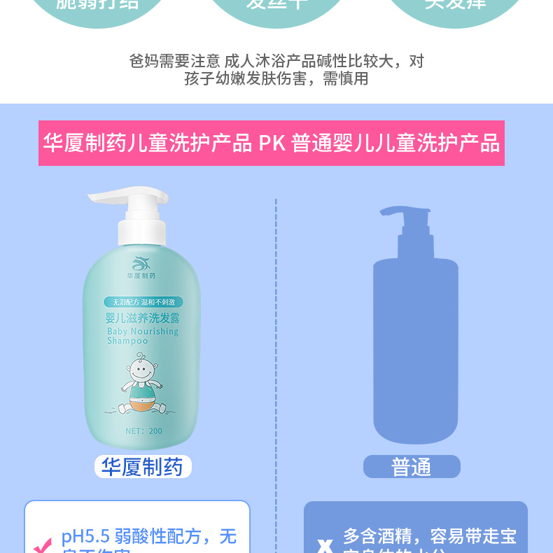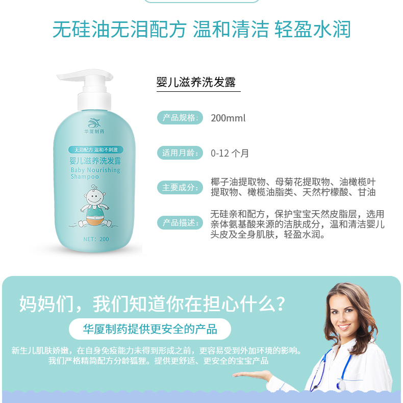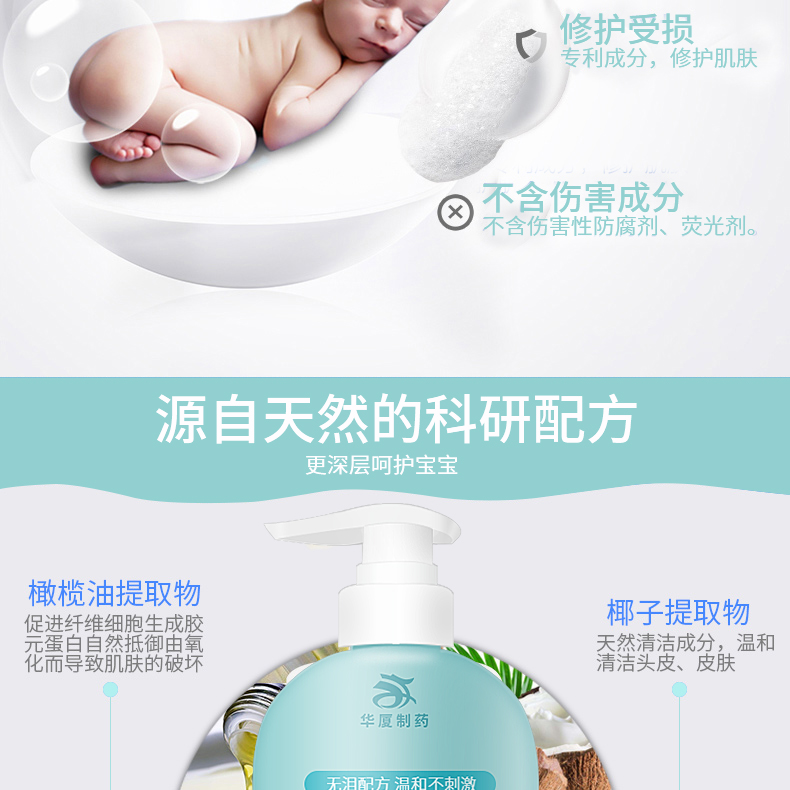 華廈牌嬰幼兒洗發(fā)露采用無(wú)硅油無(wú)淚配方,呵護(hù)寶寶肌膚皮脂,溫和護(hù)理幼嫩肌膚。其添加植物