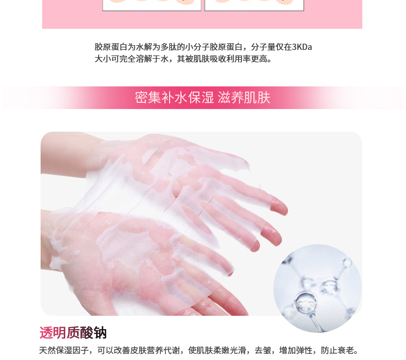 99%的肌膚問題都是肌膚缺水引起的,美白保濕面膜中添加了透明質(zhì)酸鈉,天然保濕因子,可以改善皮膚營養(yǎng)代謝,使肌膚柔嫩光滑,去皺,增加彈性,延緩衰老。