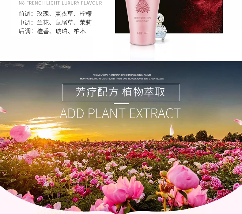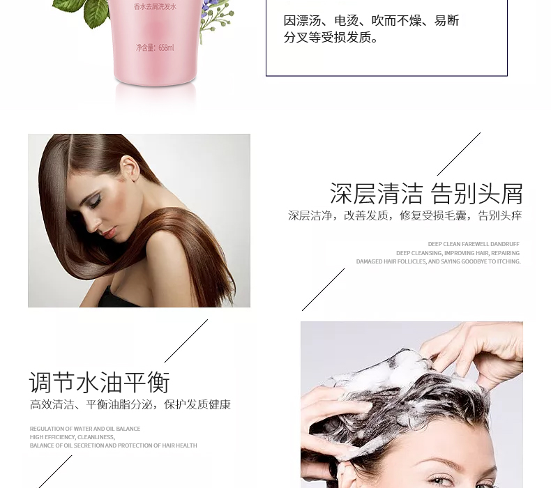 香水去屑洗發(fā)水,法國香水調配師調香,法國輕奢調香,濃郁又不會很烈,淡雅悠長,相信每一個女人都會喜歡的味道。香味能持續(xù)24小時以上。屬于滋潤型的成分,洗完后頭發(fā)的干枯毛躁現象得到明顯的改善。