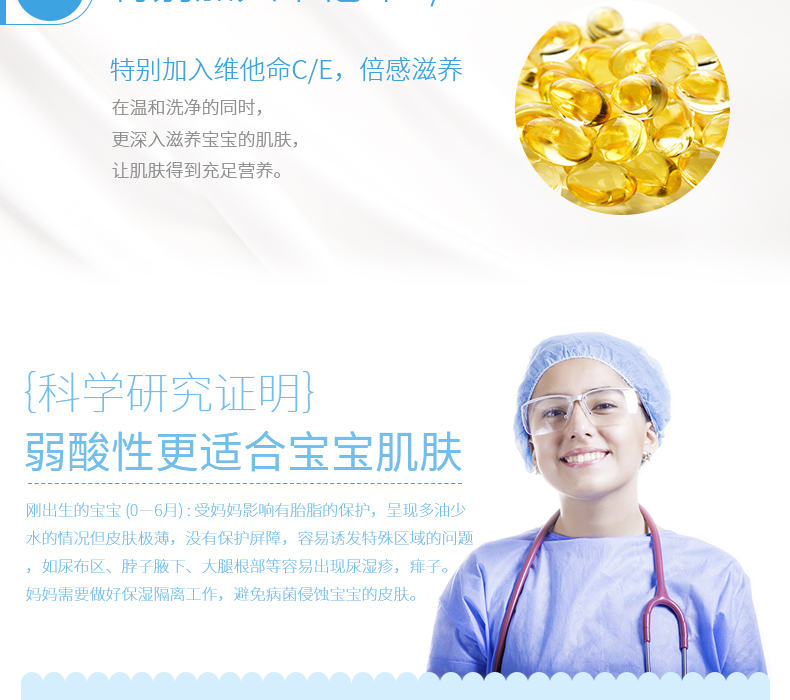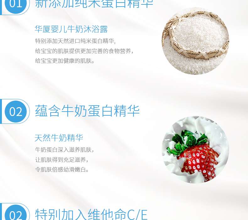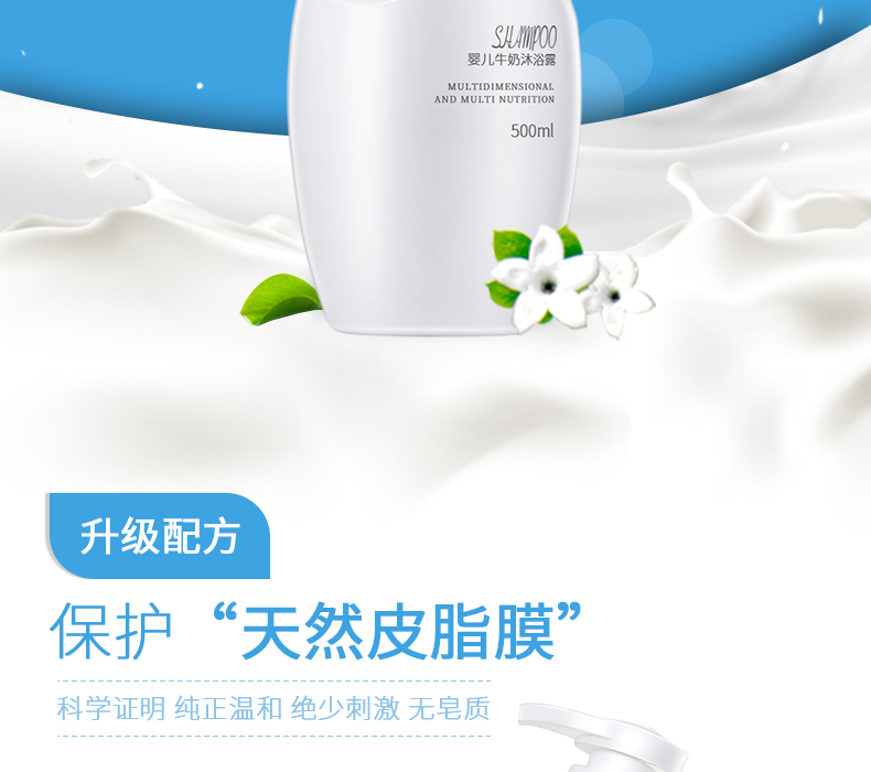 嬰兒牛奶沐浴露蘊(yùn)含豐富牛奶精華和維生素C、E,給寶寶嬌嫩的頭發(fā)和肌膚提供更豐富的營(yíng)養(yǎng)。嬰兒牛奶沐浴露每天使用,溫和洗凈的同時(shí),更可滋養(yǎng)柔潤(rùn)肌膚,令寶寶肌膚更健康柔滑。媽媽使用,也能擁有寶寶般柔滑嫩白的肌膚。