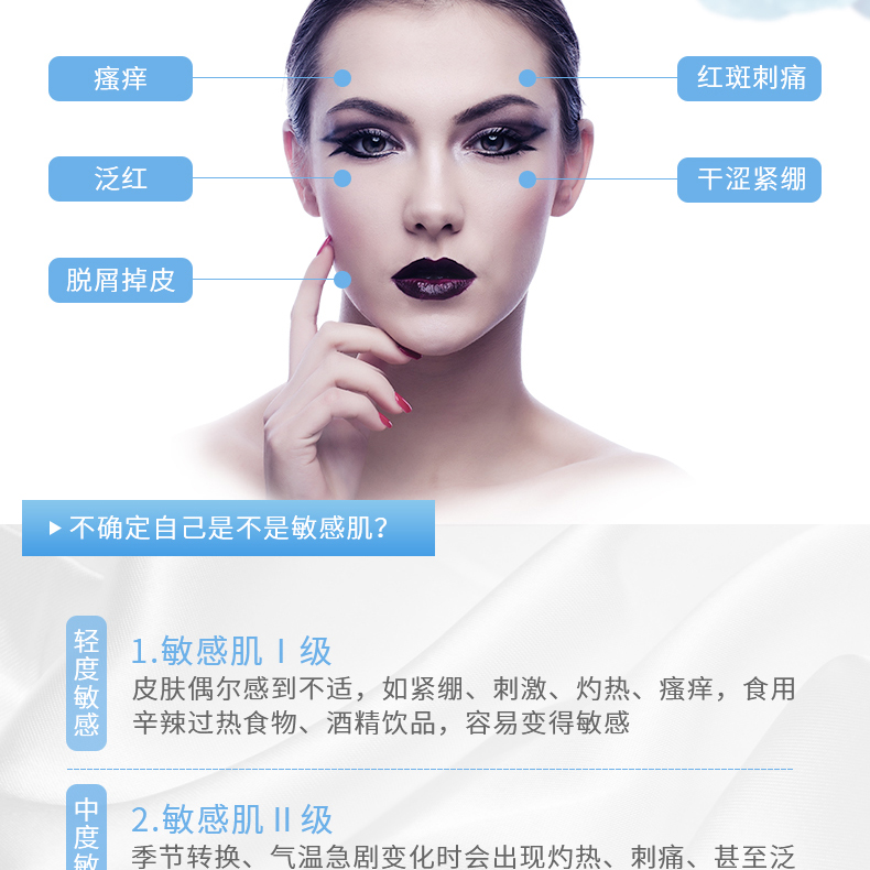 敏感性皮膚是一種問題性皮膚,任何膚質(zhì)中都可能伴有敏感性皮膚,也就是說你很有可能是油性敏感肌,也有可能是干性敏感肌。敏感性皮膚脆弱而不穩(wěn)定,極其容易受到外界刺激從而出現(xiàn)紅腫、發(fā)癢、脫皮、刺痛、紅疹等不適現(xiàn)象。華廈修復(fù)舒緩保濕面膜是很適合敏感肌膚的,采用特別配制的親膚性配方,蘊含豐富的生物發(fā)酵和植物萃取成分,舒緩并促進(jìn)改善肌膚,強效深入肌底修護滋潤細(xì)胞,對皮膚缺水舒緩具有極好的功效,幫助肌膚形成透氣的保護膜,減少外界對皮膚的刺激, 華廈修復(fù)舒緩保濕面膜適合晚上做完基本的護理之后使用,敷上后會感覺水水的,不刺激也沒有特殊的味道,肌膚逐漸吸收營養(yǎng),堅持一段時間皮膚不僅水嫩了而且有提亮效果