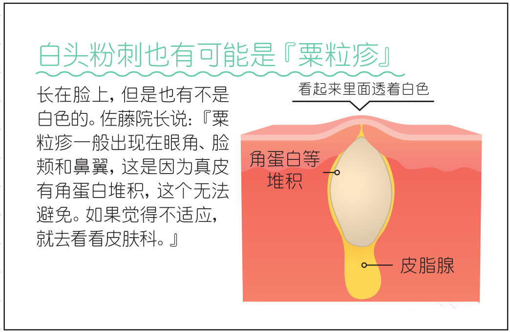 廢舊角質(zhì)和皮脂堵塞毛孔,鼓出了白色的頭,趁著粉刺還較小的時候及時護(hù)理,可以預(yù)防問題進(jìn)一步惡化。